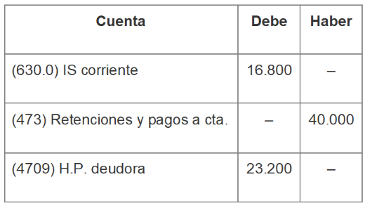 ● Si el IS corriente es inferior a los pagos a cuenta y a las retenciones satisfechas (ambos datos se recogen en la cuenta 473), debe registrarse un derecho de cobro en la cuenta 4709 (Hacienda Pública, deudora).