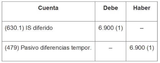IS pendiente de pago: 30.000 × 23%. Se aplica el tipo de gravamen que será exigible a las pymes en 2026 (que es el ejercicio en el que deberá revertirse el ajuste de 30.000 euros).
